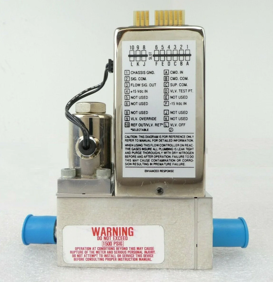 This Brooks 5964C2MALY5KA Mass Flow Controller is used working surplus. The physical condition is good, but there are signs of previous use and handling.