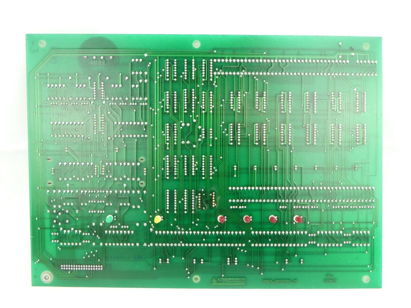 This Cerberus Pyrotronics 580-187081-3 Fire Detection Control PCB is used working surplus. The physical condition is good, but there are signs of previous use and handling.