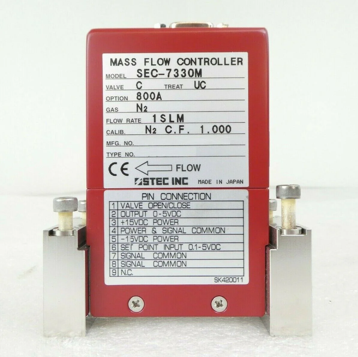 This STEC SEC-7330M Mass Flow Controller is used working surplus. The physical condition is good, but there are signs of previous use and handling.